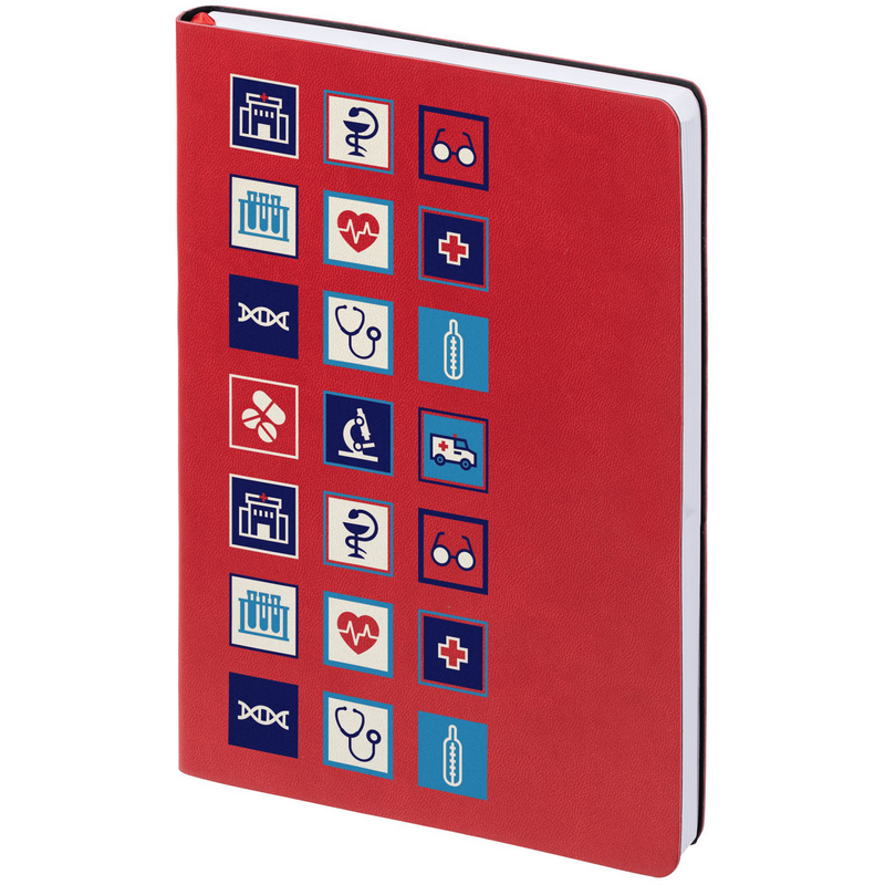 Ежедневник с гибкой обложкой, выполнен из материала Latte, красный, дополнен ляссе в цвет обложки.