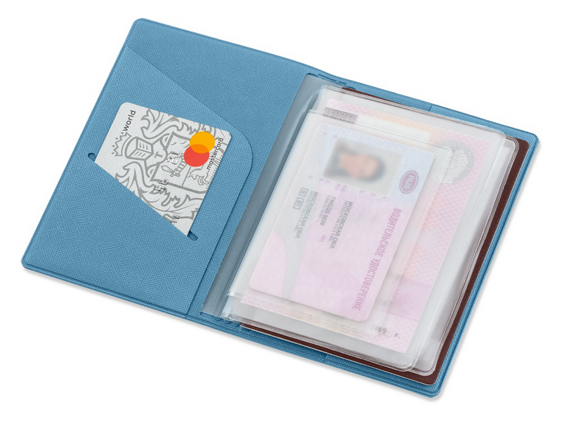 Внутренние вкладыши выполнены из пленки пвх и позволяют разместить: паспорт, свидетельство о регистрации тс, полис осаго, водительское удостоверение, также имеется кармашек для пластиковой карты.