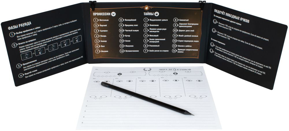 "Лига детективов" – это увлекательная разговорная игра на дедукцию. Каждый игрок получает профессию и тайну, а затем отвечает на вопросы так, чтобы только самые смекалистые догадались, кем он является. Здесь вам потребуются фантазия и навыки дедукции, ведь подсказки должны быть не слишком запутанными или очевидными.